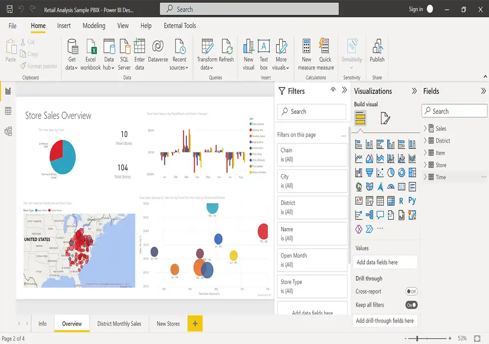 این نرم افزار یک بستر مبتنی بر هوش تجاری و مدیریت اطلاعات کسب و کار است. قابلیتهای متنوع نرم افزار Microsoft Power BI به شما کمک میکند تا بتوانید دادههای گسترده خود را به راحتی تحلیل و بررسی کرده و نتایج آن را در اختیار سایر افراد قرار دهید.