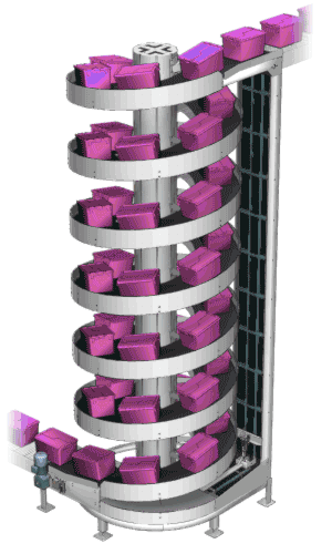 این نوع کانوایرها برای انتقال کالاها به صورت عمودی از یک طبقه به طبقه دیگر طراحی شدهاند. این سیستمها معمولاً بهصورت کاملاً خودکار عمل میکنند و میتوانند به صورت مستقیم کالاها را از یک نقطه به نقطه دیگر در طبقات مختلف منتقل کنند.