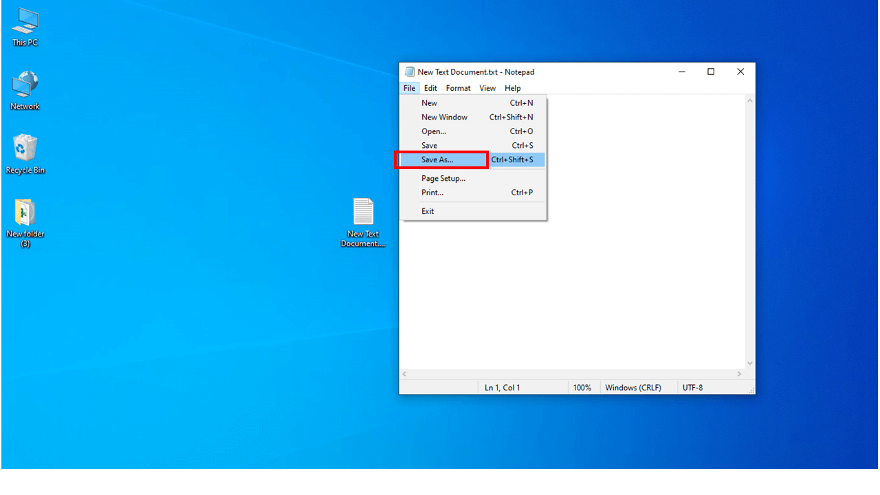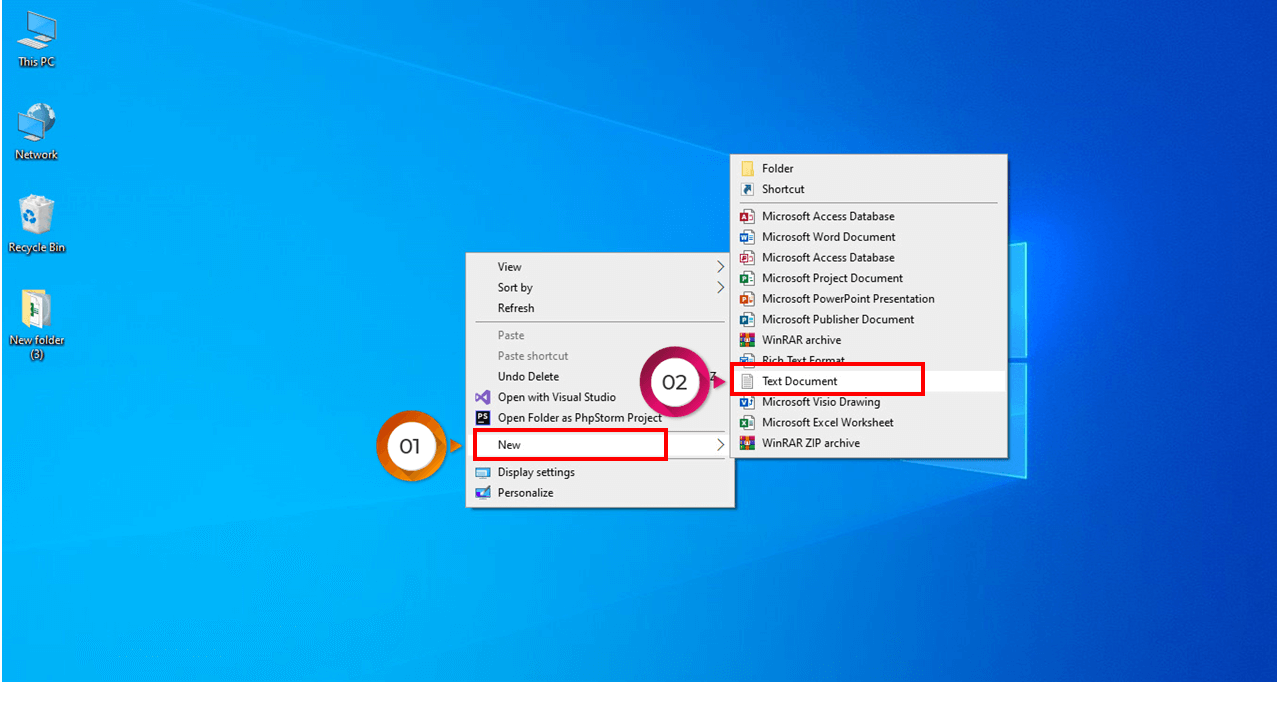 6- بر روی دسکتاپ کلیک راست کرده و از گزینه NEW گزینه Text document کلیک کنید