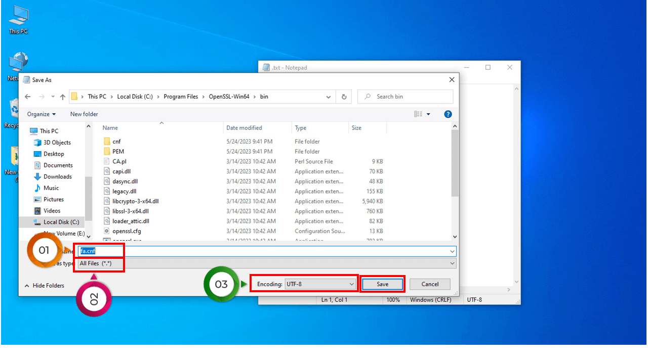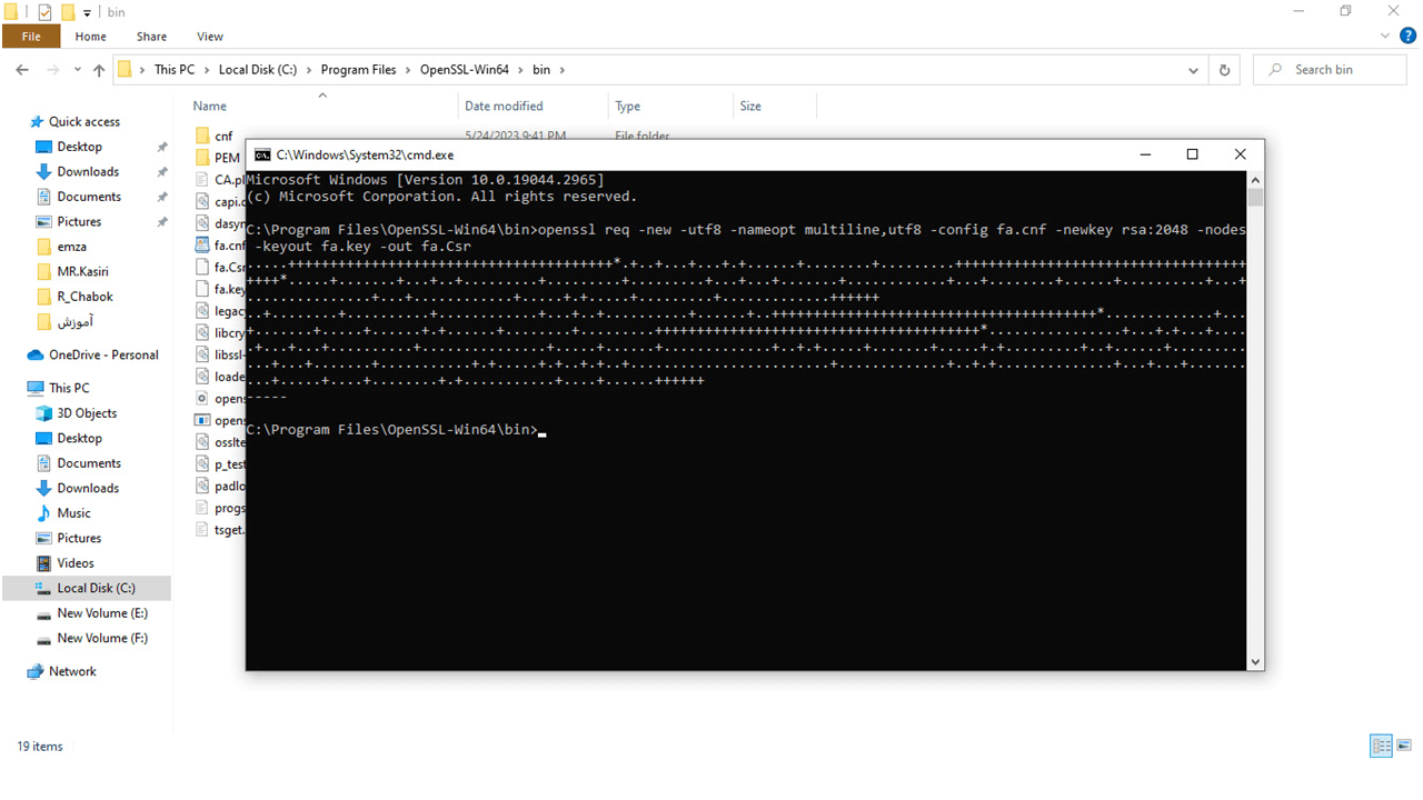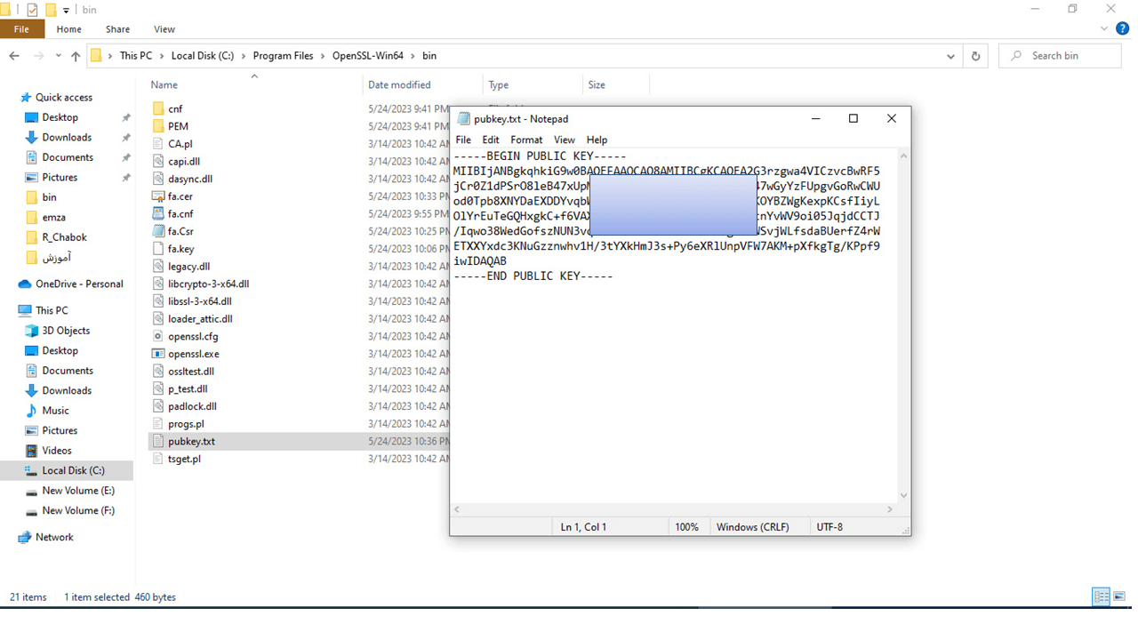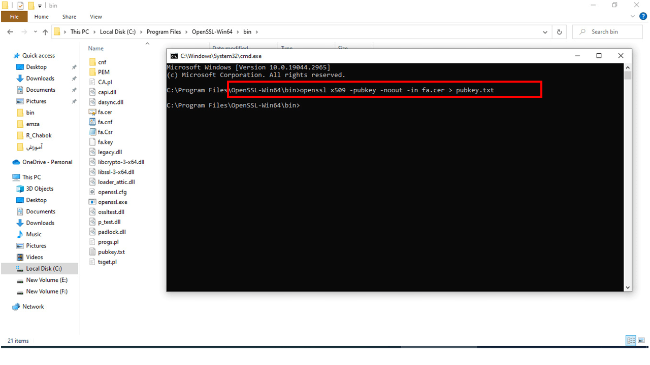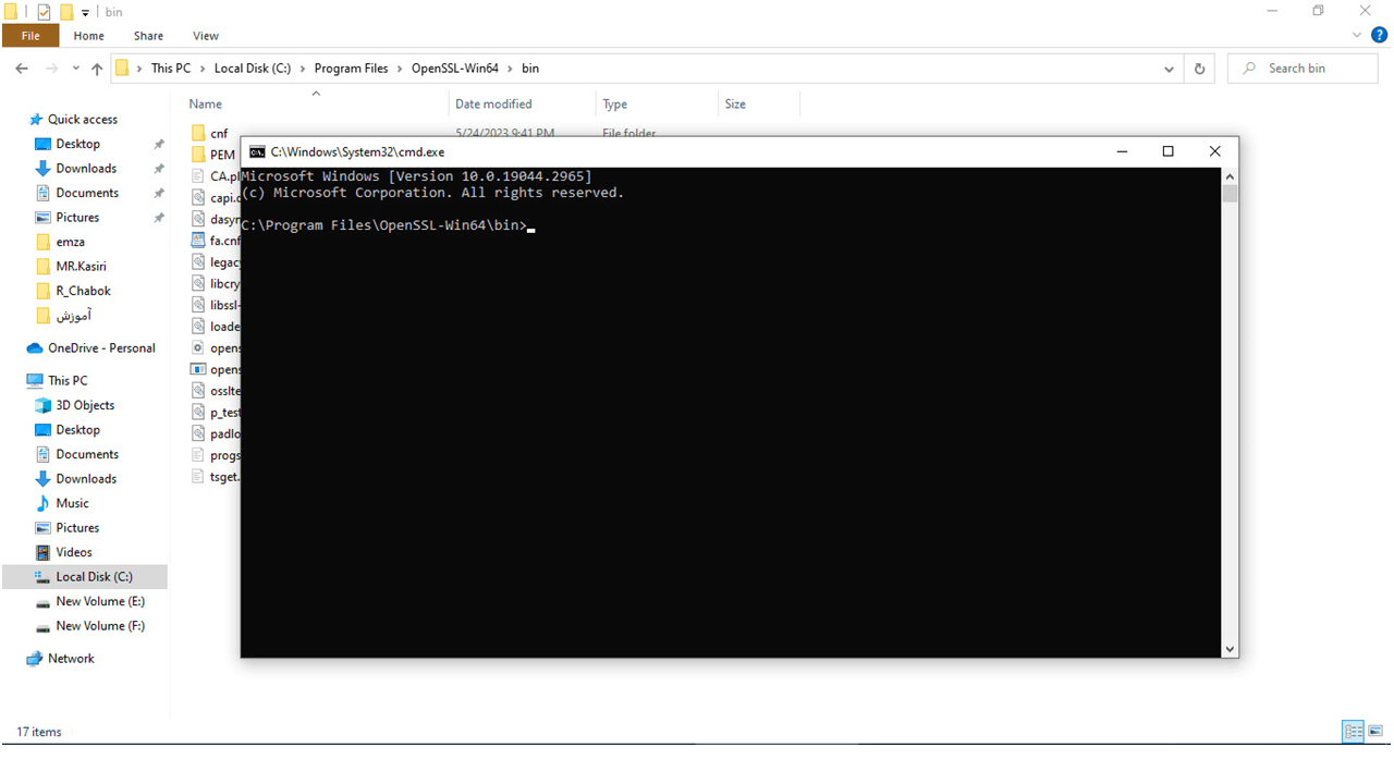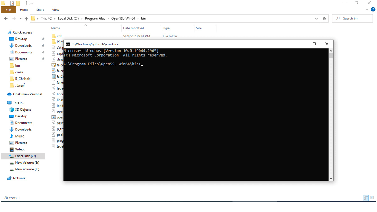 12-وارد مسیر نصب نرم افزار open ssl شده فایل تکست ذخیره شده در مرحله قبل را در مسیر نصب Open ssl کپی کنید