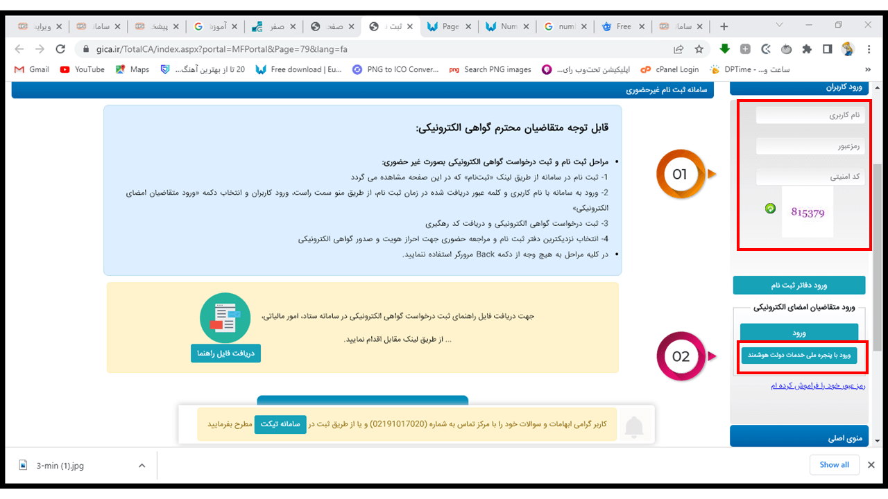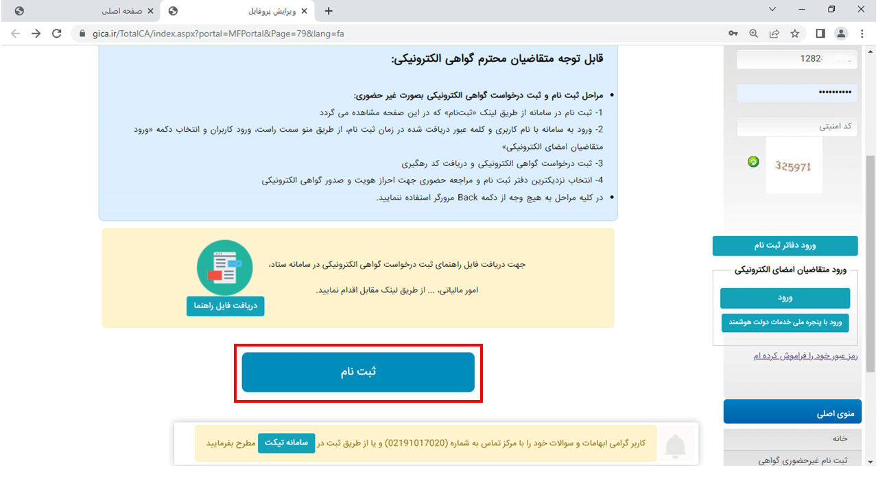 18- در این مرحله در صورتی که ثبت نام کرده اید از طریق منوی سمت راست سایت اقدام به ورود نمایید در غیر اینصورت جهت ثبت نام
