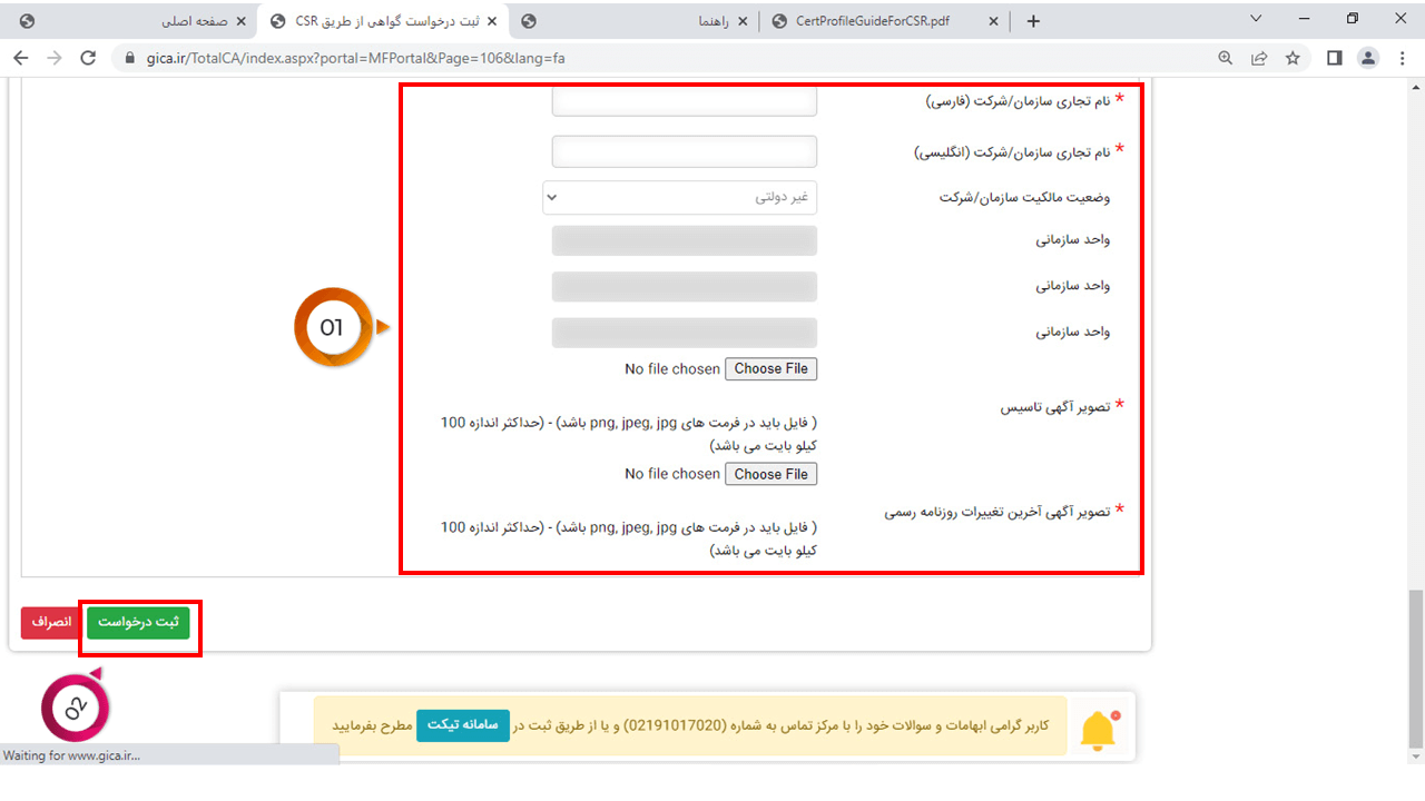 25- در این قسمت موارد خواسته شده را تکمیل نمایید و در آخر بر روی ثبت درخواست کلیک کنید