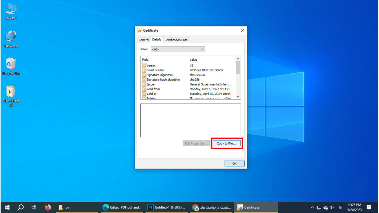 29- برو روی دکمه Copy to File کلیک کنید