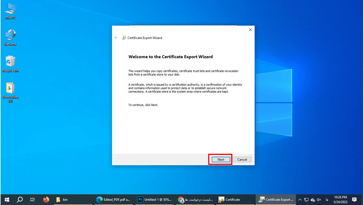 1- مطابق با تصویر زیر گزینه بر روی دکمه NEXTکلیک کنید