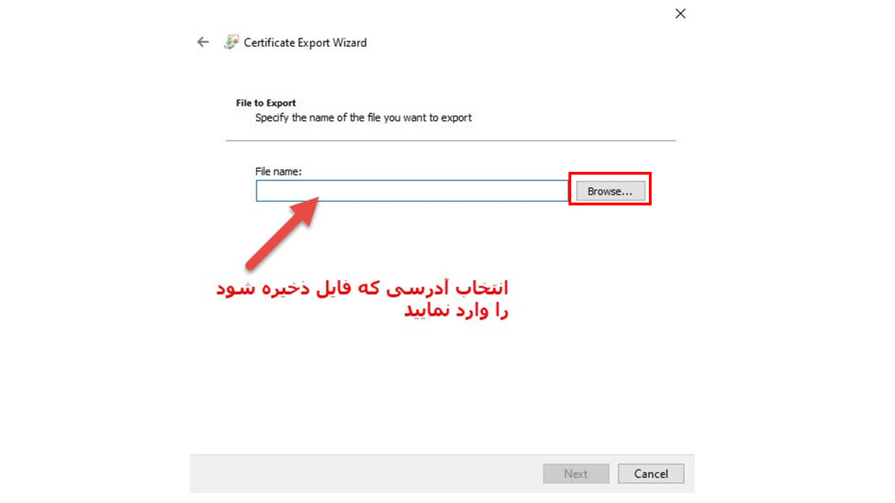 32- در این مرحله باز زدن دکمه Browse مسیر فایل که قرار است ذخیره شود را انتخاب کنید