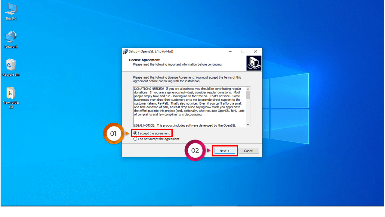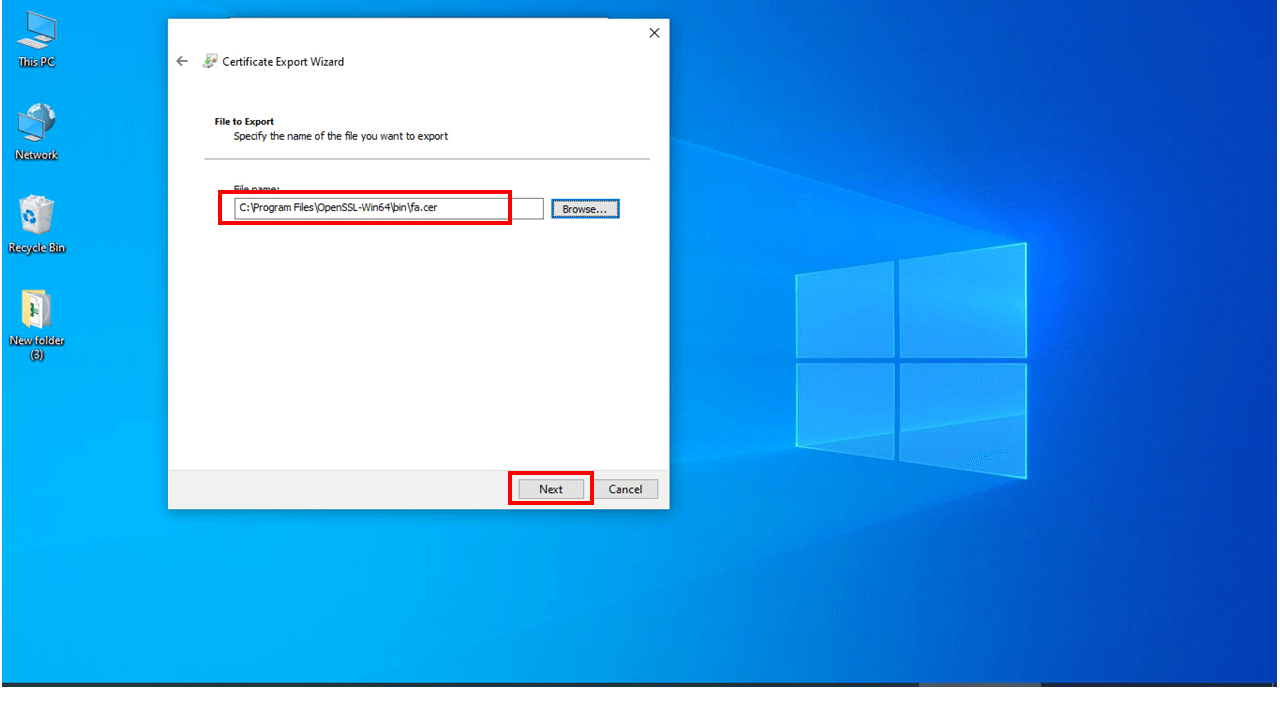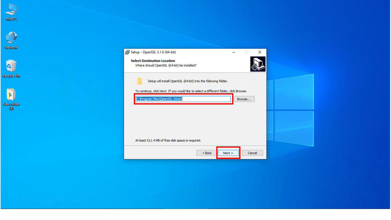 نکته :مسیر انتخاب شده باید همان مسیر نصب open ssl باشد