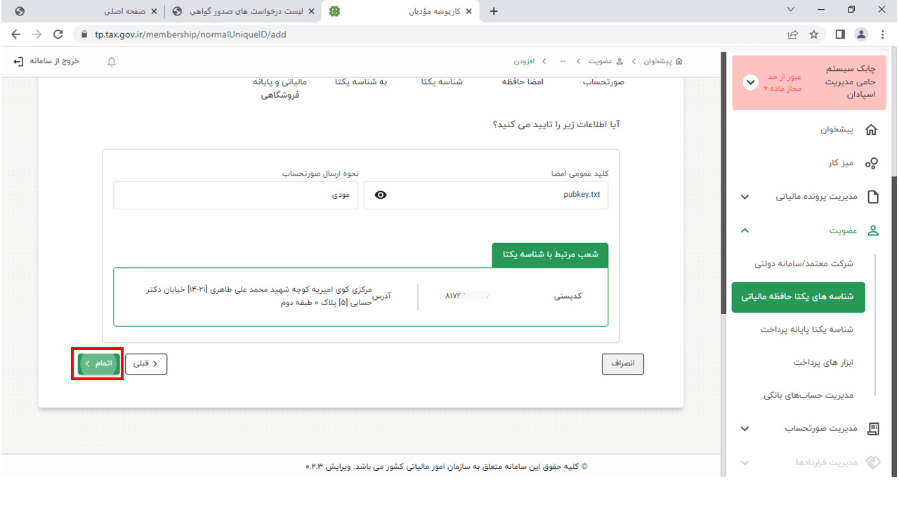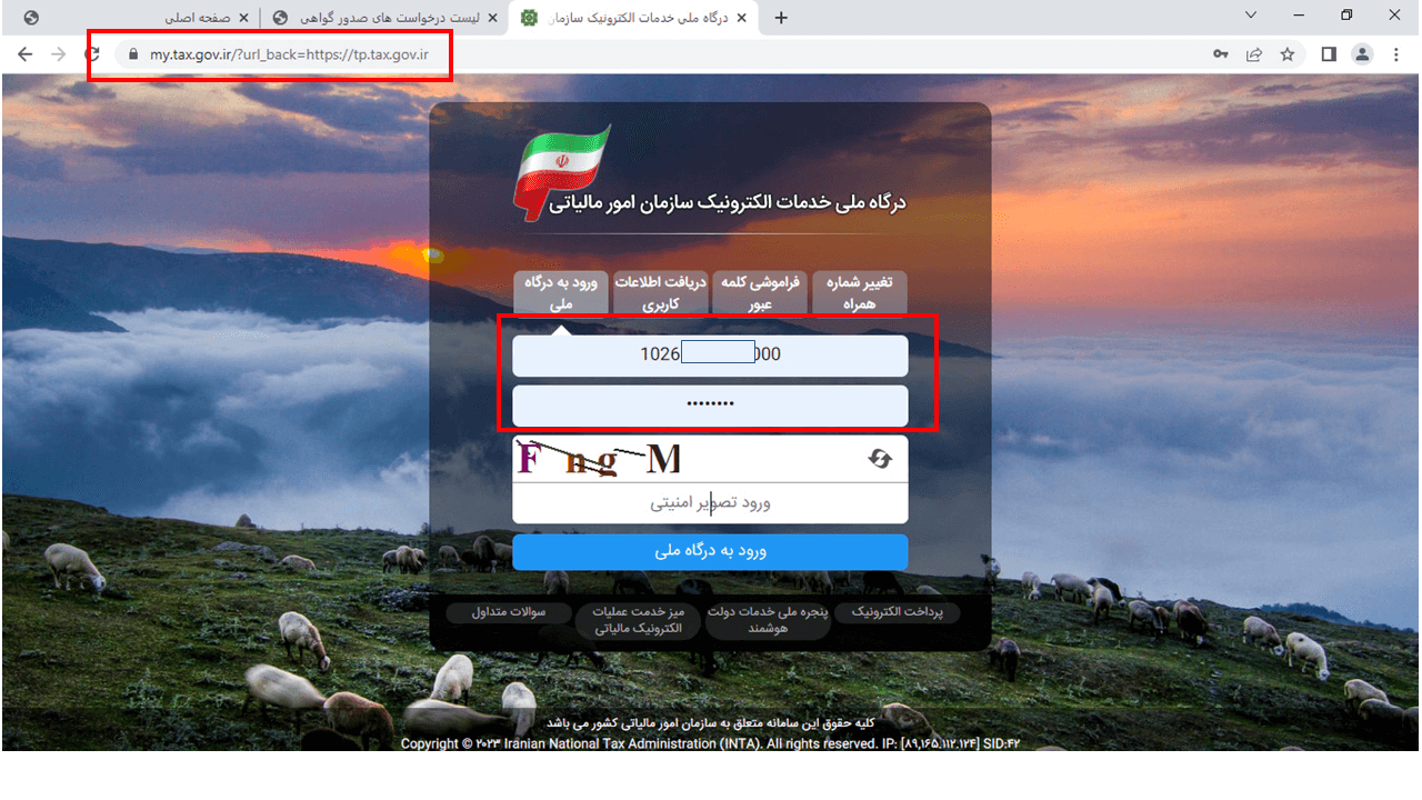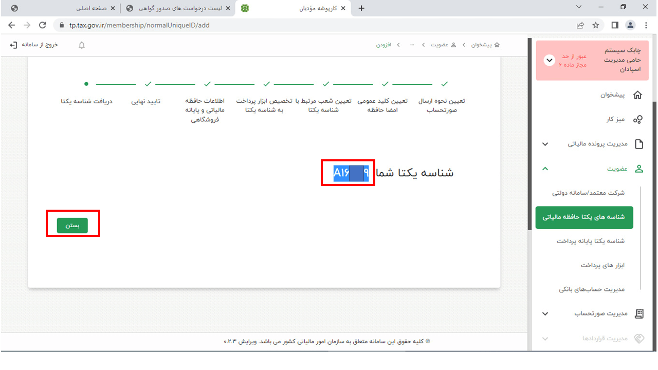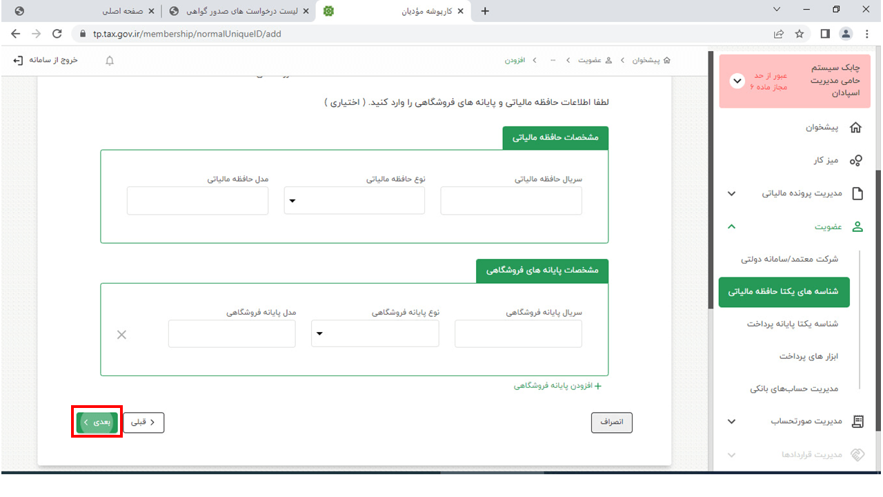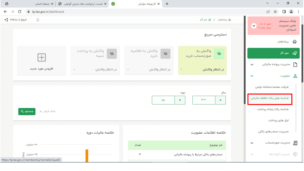 14- در این مرحله وارد سایت https://www.chaboksystem.ir/tax شده و عبارت زیر را کپی کنید