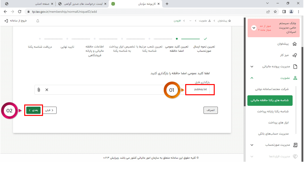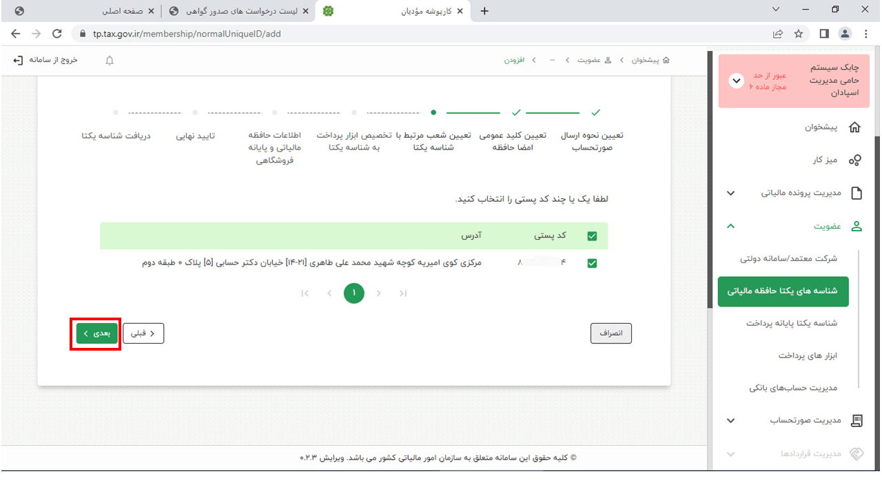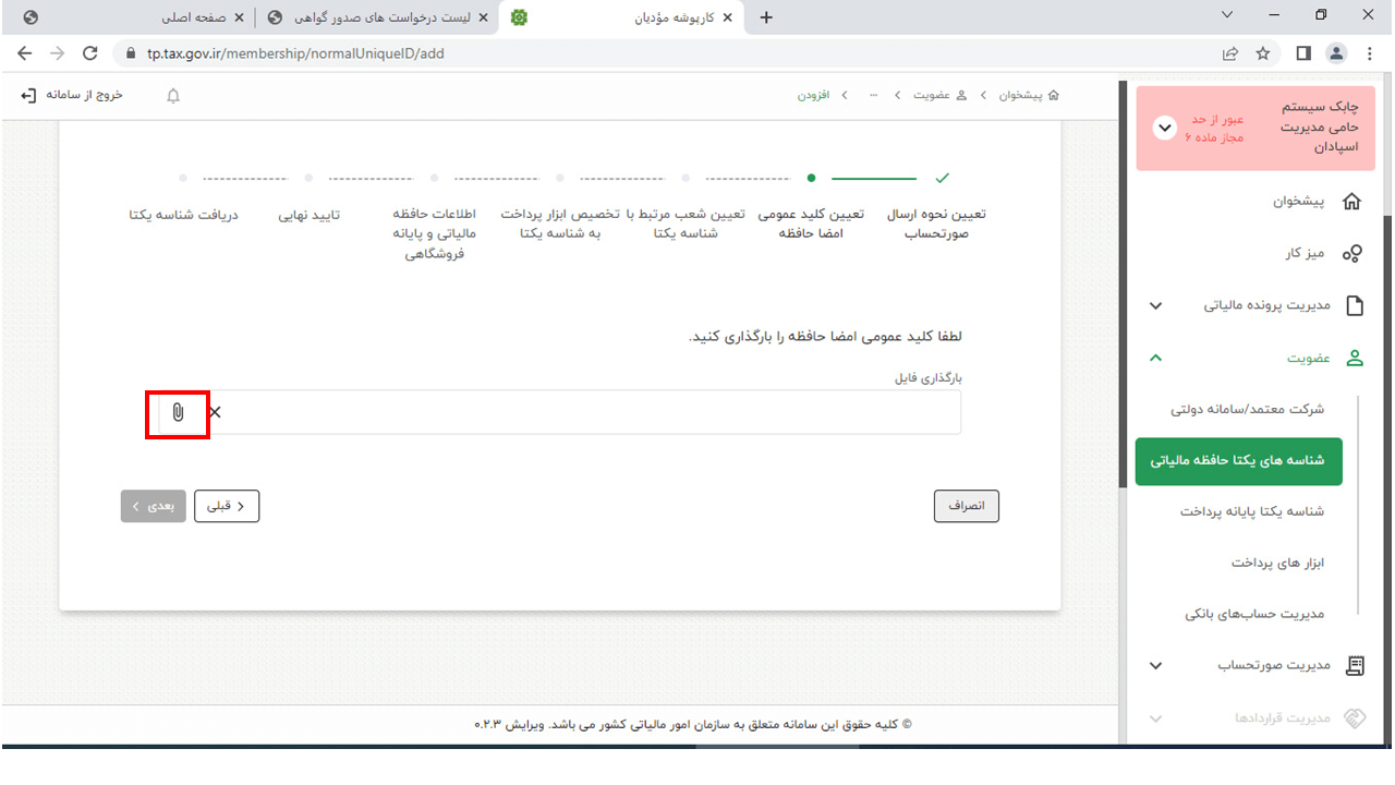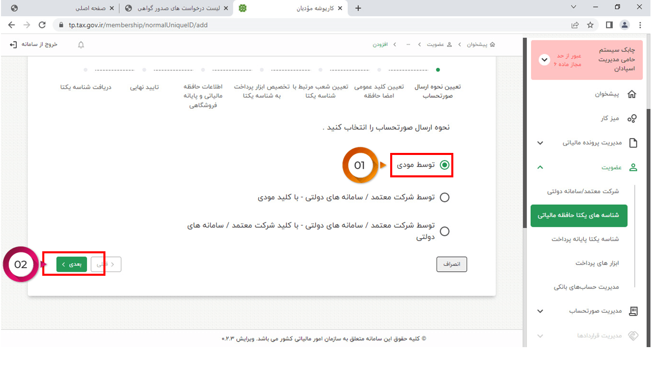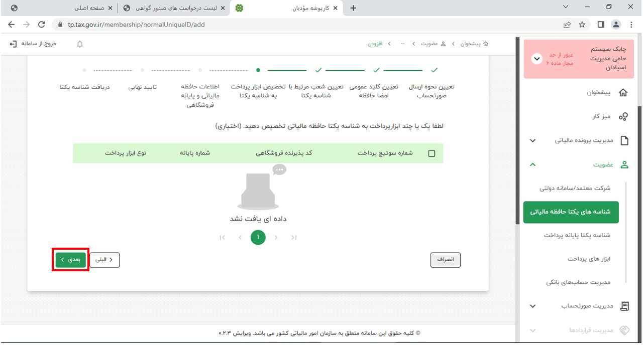 14- در این مرحله وارد سایت https://www.chaboksystem.ir/tax شده و عبارت زیر را کپی کنید