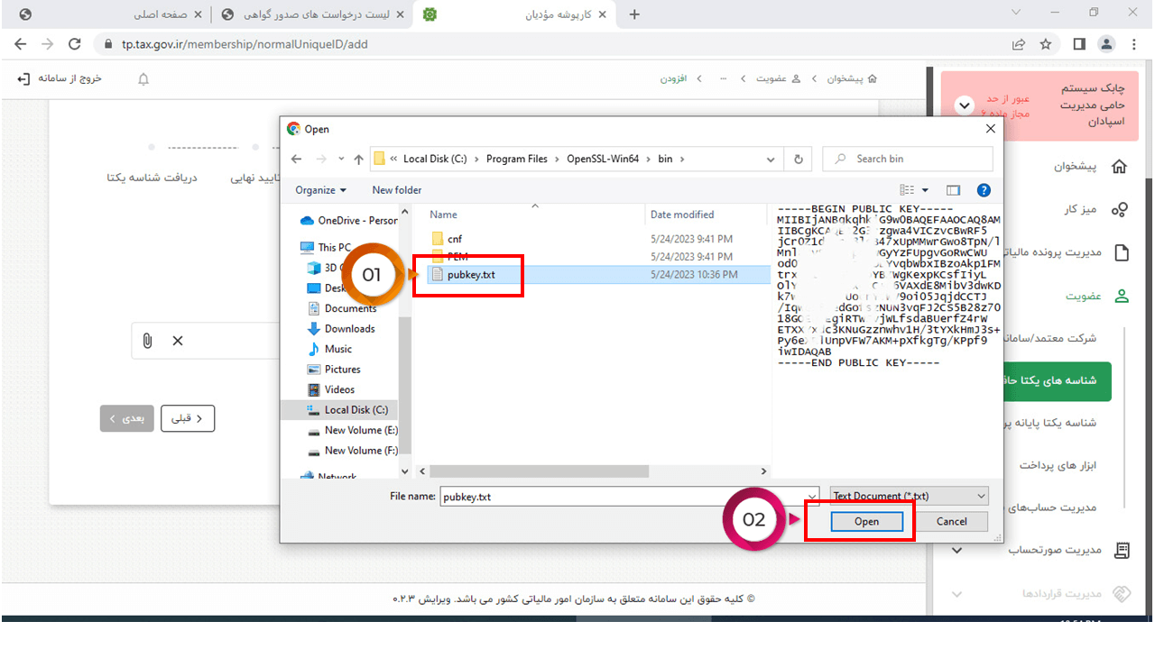 54- فایل fa.key را باز کرده و متن آن را کپی کنید
