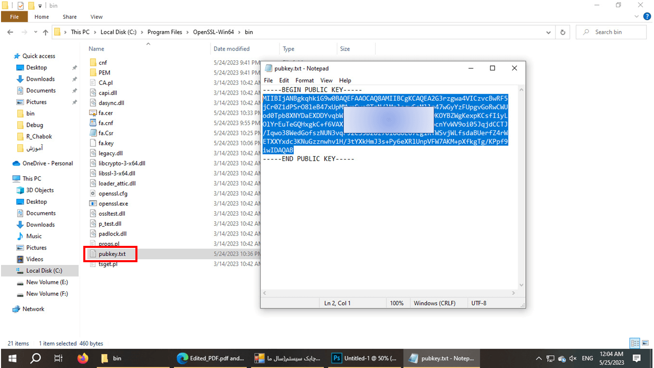 52- فایل pubkey.txt را باز کرده و متن آن را کپی کنید
